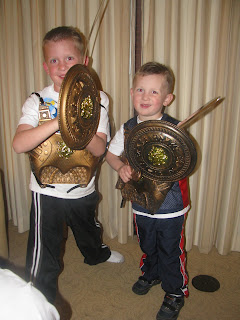 The boys 1st time bowling. We had so much fun. We used the bumpers and believe it or not jake out bowled his Dad!!!!
